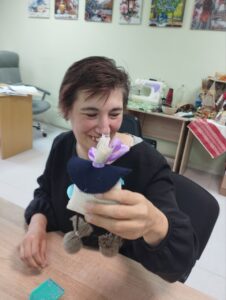 Занятия творчеством помогают развивать мелкую моторику,координацию движений, креативное мышление,улучшать эмоциональное состояние, что особенно важно для людей с заболеваниями психоневрологического профиля, а изготовленная поделка «Оберег» стала настоящим праздником, полным радости и ярких эмоций!