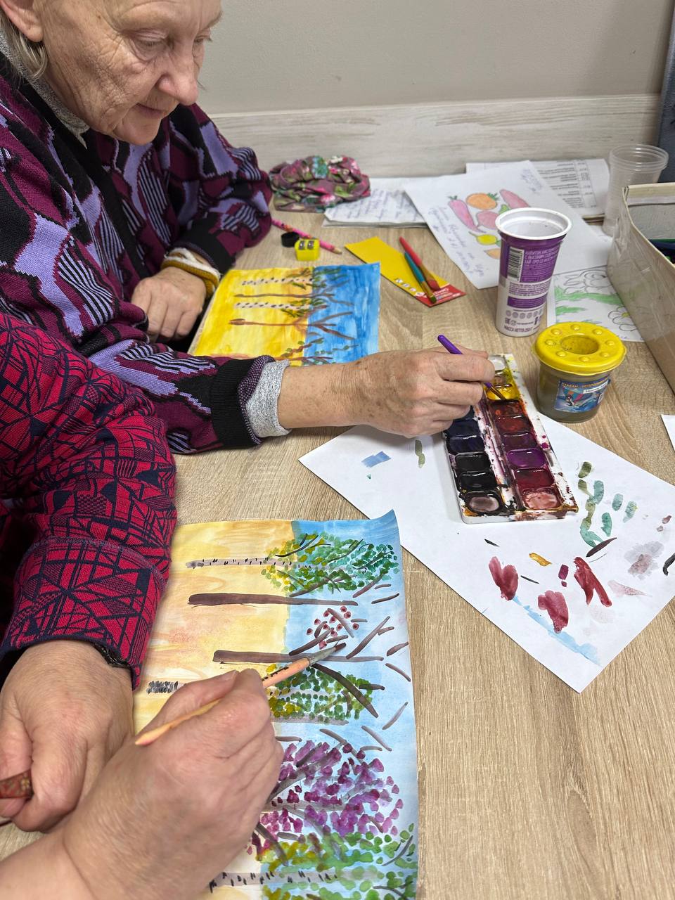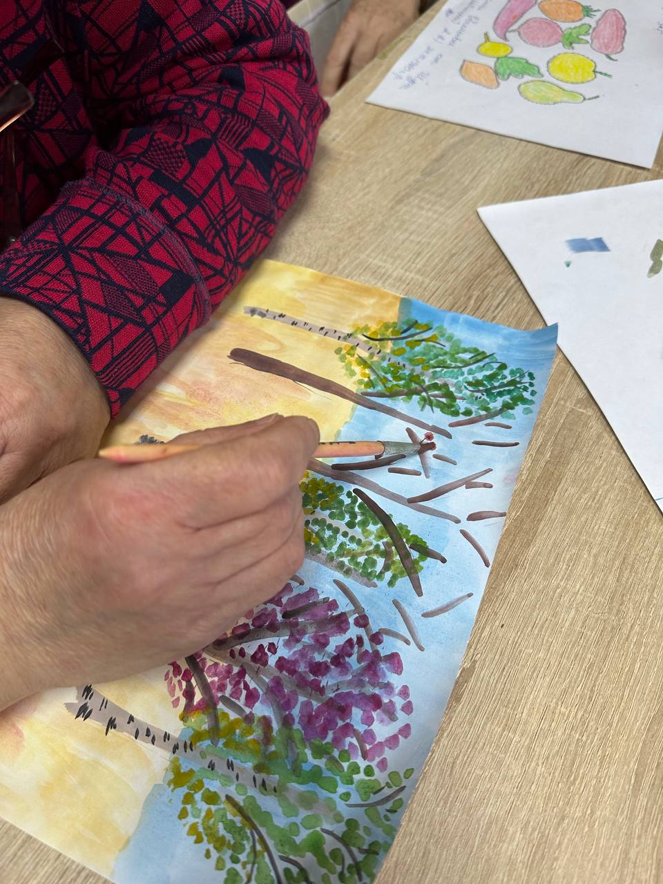 Сегодня на занятии арт-терапией оживали осенние пейзажи — яркие, воздушные и наполненные особым настроением. Рисование красками — это не только развитие моторики, но и прекрасный способ выразить свои чувства через цвет. Творчество дарит столько радости и умиротворения!