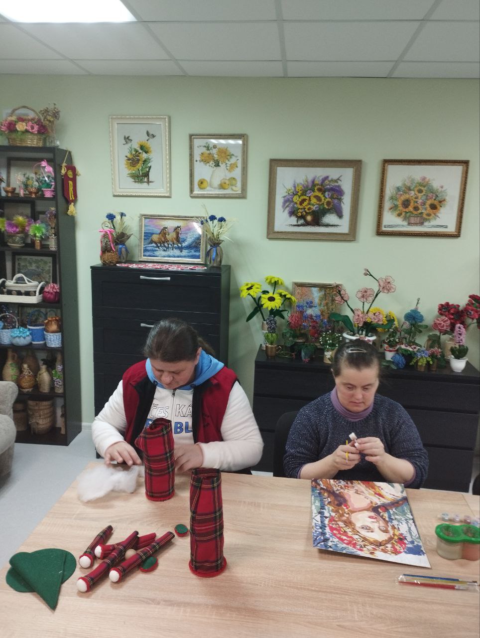 В государственном учреждении Раковский социальный пансионат «Ислочанка» в уютной мастерской царит особая, теплая и творческая атмосфера.Здесь пахнет хвоей, клеем и красками.Декабрь- самое горячее время для наших рукодельниц, ведь это месяц подготовки к самому волшебному празднику — Новому году.