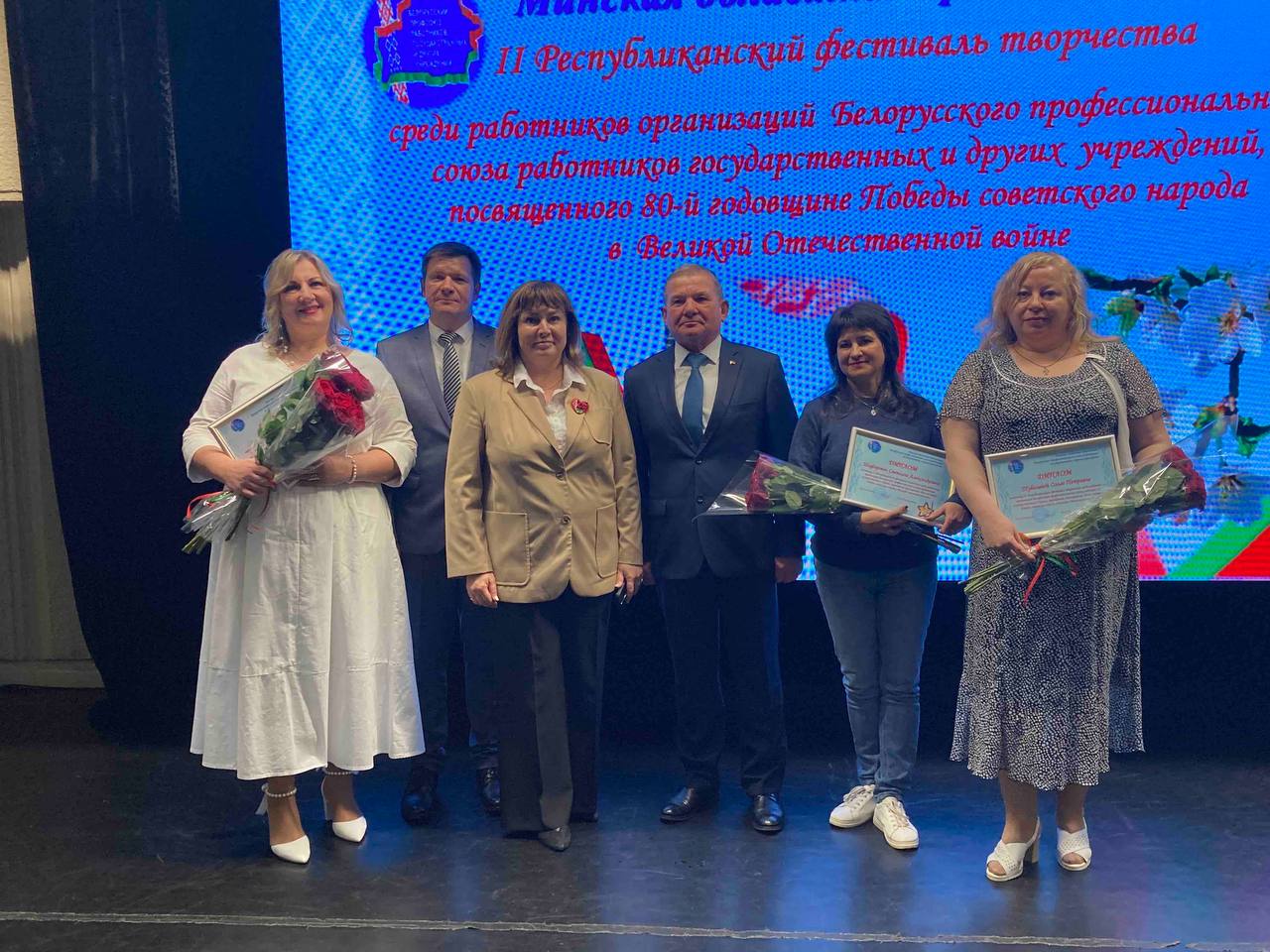Сегодня в г. Минск состоялся областной этап II Республиканского фестиваля творчества, посвященного 80-й годовщине Победы советского народа в Великой Отечественной войне, организованный МОО Белорусского профессионального союза работников государственных и других учреждений. Участниками от государственного учреждения «Раковский социальный пансионат «Ислочанка» были Исаенко Светлана Ричардовна и Шафаревич Светлана Александровна. Песня от сердца ♥️ и мастер -класс — это творческие работы, которые были представлены к вниманию.